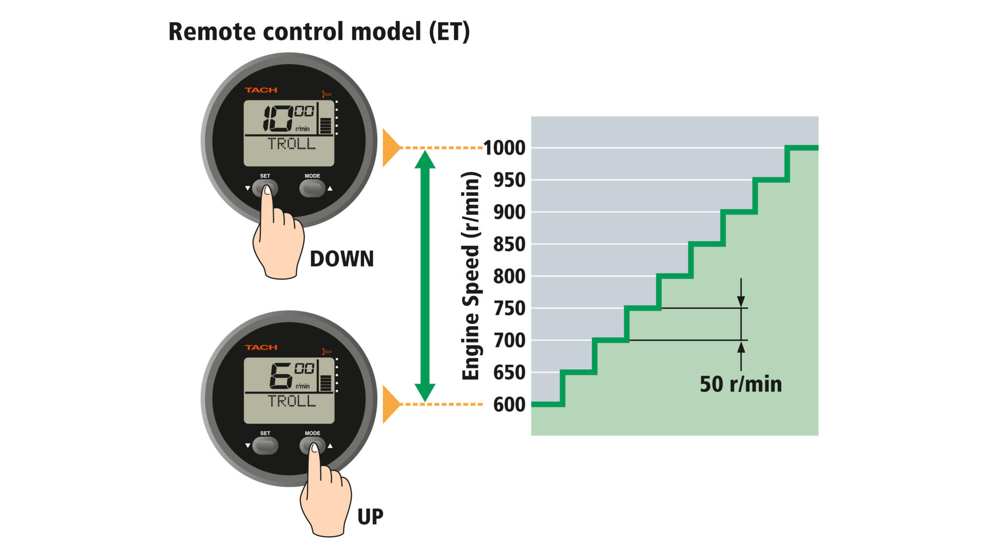 Väga mugav ja töökindel süsteem on standardvarustuses 115 hj mudelil. Seadista madalpöörete väärtus (600–1000 p/min, 50 p/min sammud) tahhomeetri nupu või mitmefunktsioonilise roolikäepideme abil. Süsteem lähtestub automaatselt, kui gaasi uuesti liigutada.