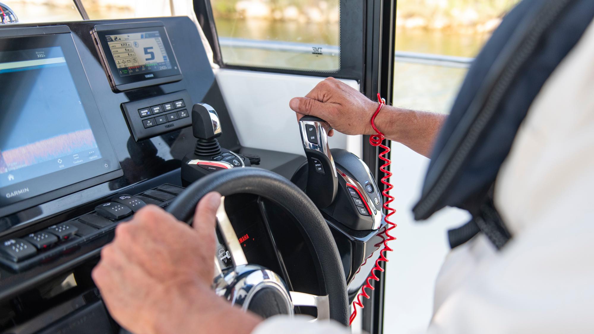 350 hj V6 pakub Yamaha eksklusiivseid funktsioone nagu DES, TotalTilt ja TERE ning ühildub HelmMaster EX®-iga, tagades sujuva juhtimise, autopiloodi ja parema kontrolli suuremate paatide puhul.