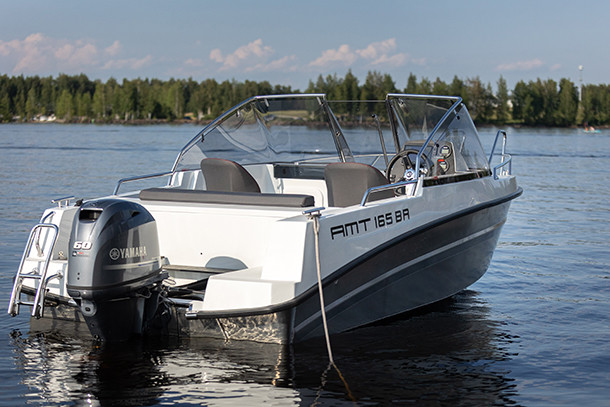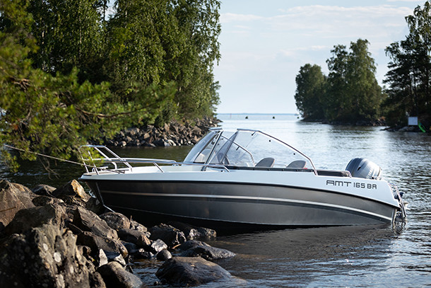 Uus AMT 165 BRF on populaarse 175 BRF väiksem versioon. AMT 165 BRF saab varustada 50–60 hj mootoriga – kooslus töötab sujuvalt ja ohutult kõikides tingimustes. Juht istub eraldi istmel, see jätab reisijatele piisavalt avarust ja võimaldab 5 inimesel mugavalt tuuleklaasi taga istuda. Konsoolide vahel olevat ust on lihtne kasutada ning see kaitseb hästi tuule ja vee eest. Paadil on standardvarustuses mugavad istmed, padjad, integreeritud Abloy-lukud, kütusepaak ja köied, fenderid ja ankur. Vajadusel saab lisada varikatuse ja kuni 9 -tollise plotteri. Kõik AMT paadid on projekteeritud ja toodetud Soomes.