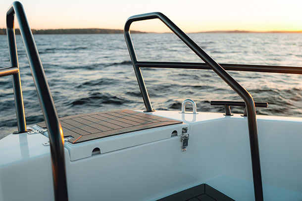Roostevabast terasest reelingud, knaabid, vööriaas, käepidemed ja ujumisredel