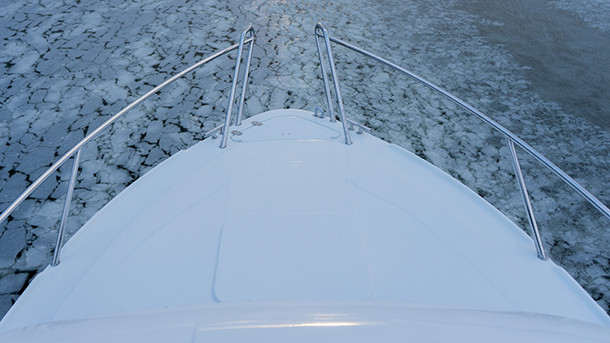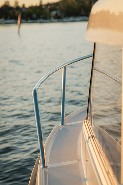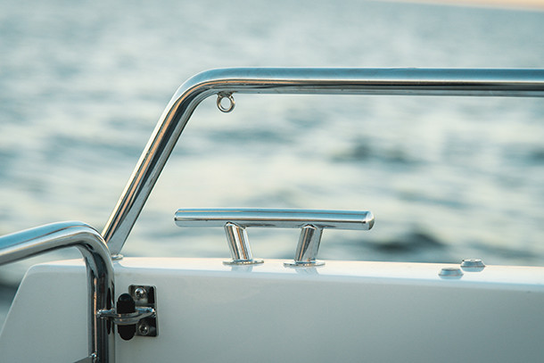 Roostevabast terasest reelingud, knaabid, vööriaas, käepidemed ja ujumisredel
