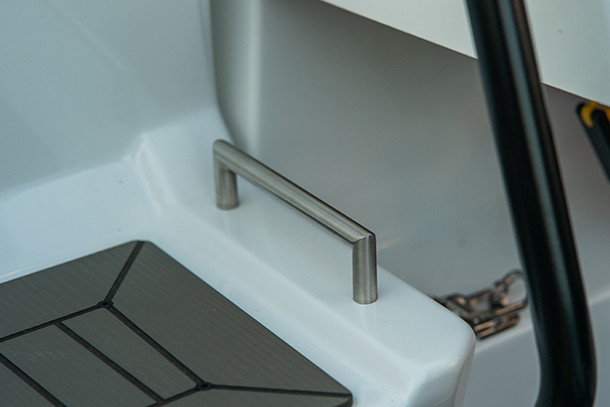 Roostevabast terasest reelingud, knaabid, vööriaas, käepidemed ja ujumisredel
