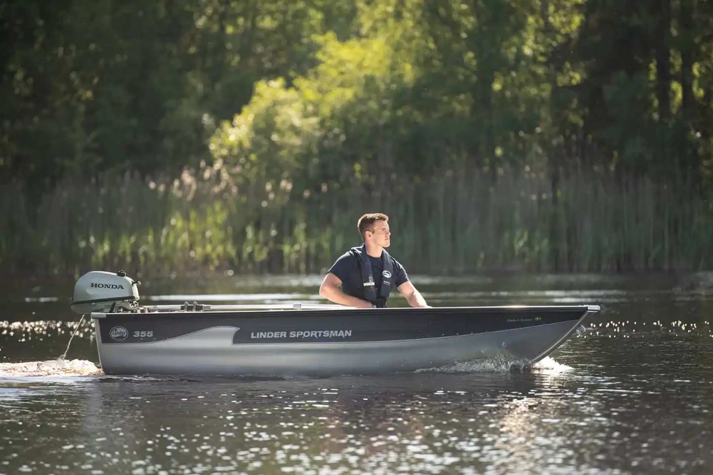 Paat järvedele ja jõgedele, lähim rannik. Lihtne manööverdada, isegi teismelise jaoks. Keskkonnasõbralik paadivalik. Valmistatud kõrgekvaliteetsest korrosioonikindlast alumiiniumist, mida kasutatakse lennukiehituses. Sportsman 355 on varustatud alumiiniumist aerudega. Heaks kiidetud Det Norske Veritas.