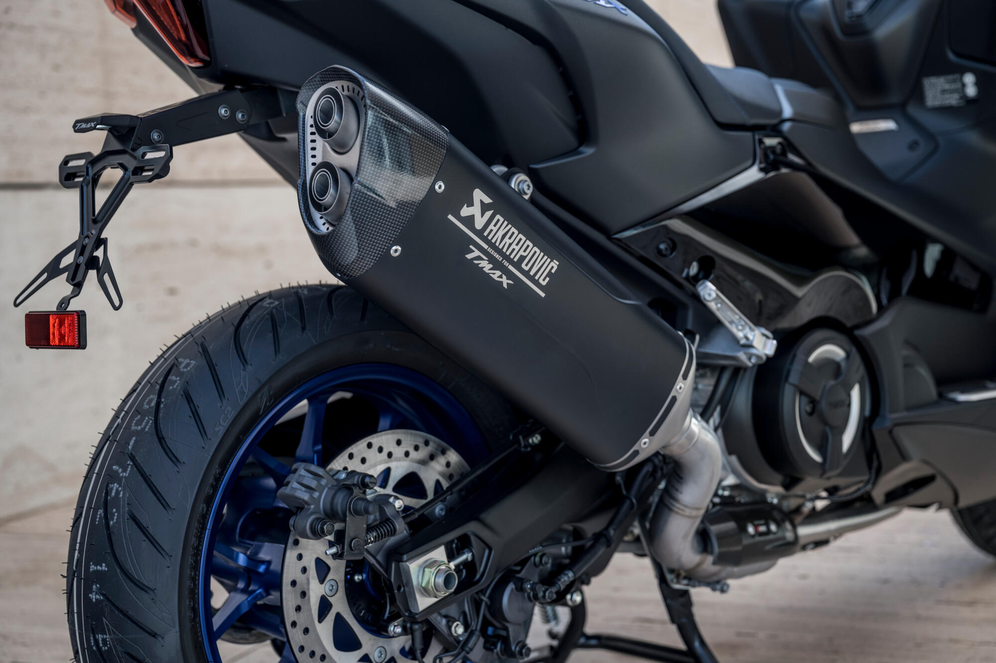 TMAX has led the way in Sport Scooter chassis design right from the beginning. For optimum chassis strength and precision handling the 560cc engine is mounted directly into the lightweight aluminium twin-spar die-cast frame. More advanced motorcycle-derived technology can be seen in the use of a long aluminium swingarm that contributes significantly to high speed stability.